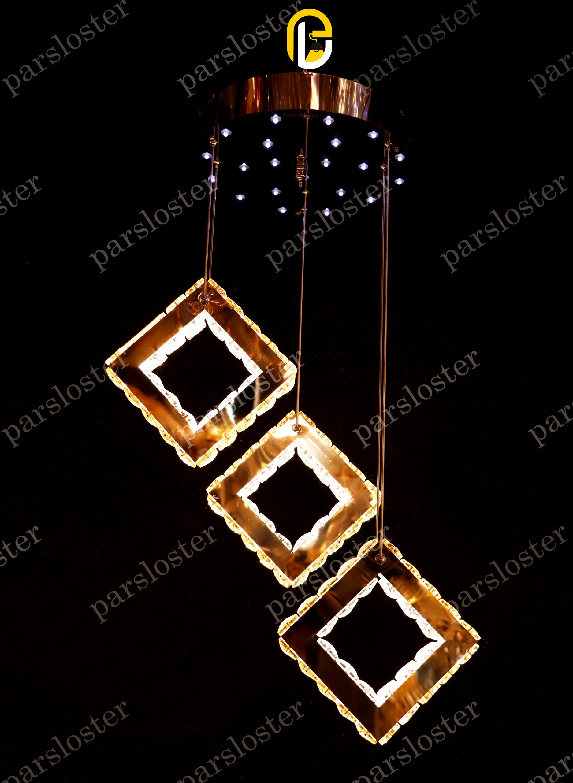 لوستر اویز ستایی مربعی کریستالی با LED داخلی